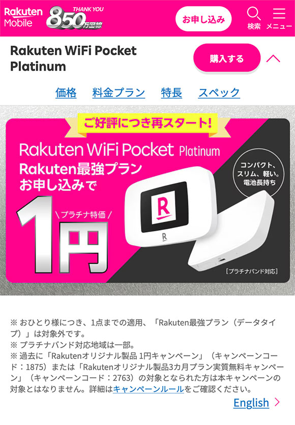 | ホームルーター:4,708円 ポケット型WiFi:4,708円 ※いずれも初月無料 |