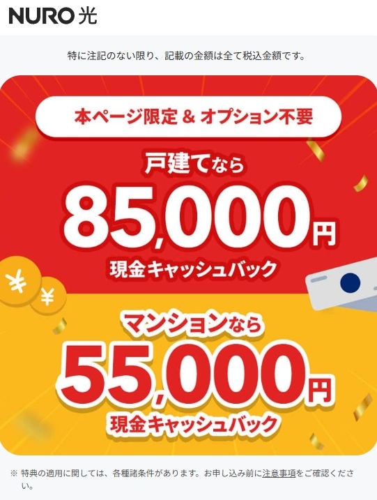 - オプション加入で2,000円キャッシュバック