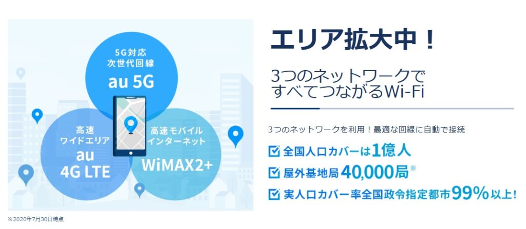 | 利用回線 | ・WiMAX 2+ ・au 4G LTE ・au 5G |