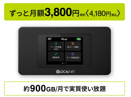 旧プランの月額料金は3,500円でしたが、限界突破WiFi Ⅱは月額3,800円でのご提供になります。