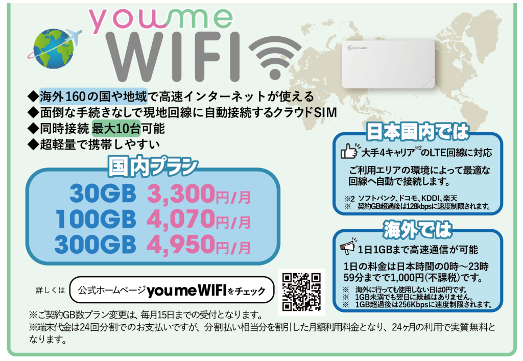 株式会社you me mobileでは、2025年6月から光回線「you me 光」、同年8月からポケット型WiFi「you me WIFI」の提供も開始している。