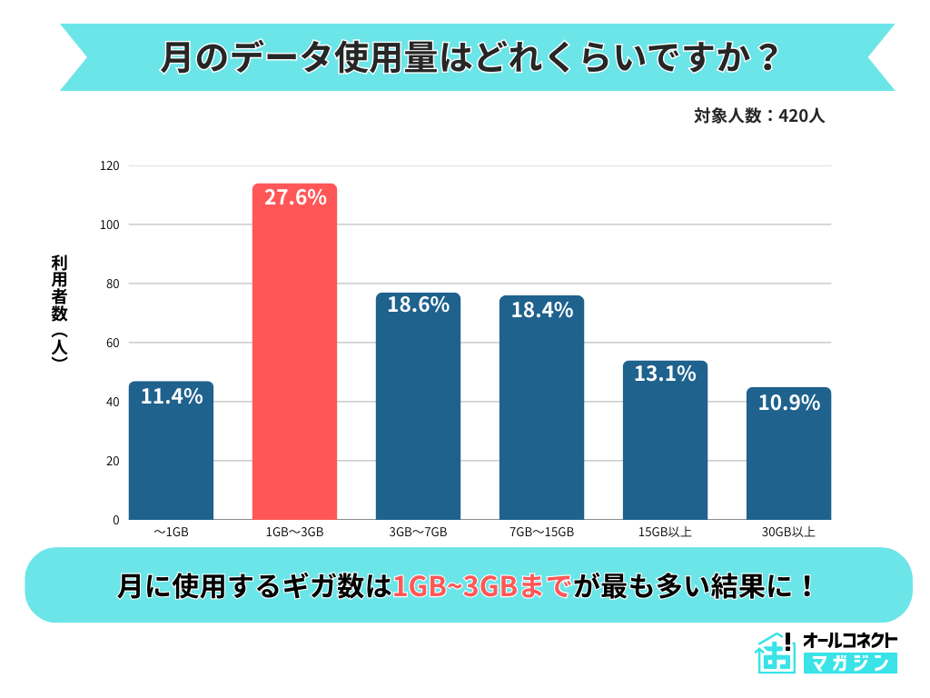 ・軽量プランが主流:月間1GB~3GBの利用者が最多
