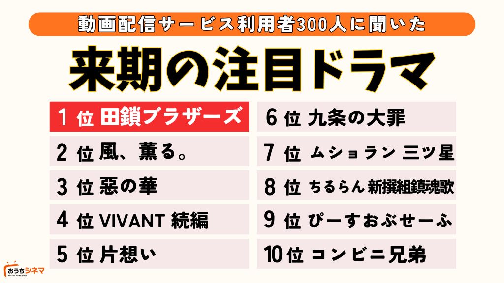 ・来期注目作品1位は「田鎖ブラザーズ」(10.7%)