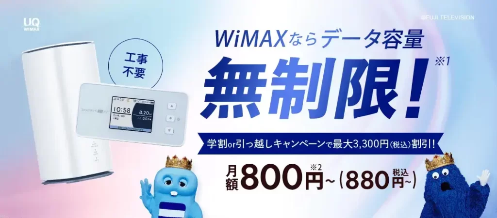 最新の WiMAX +5G に対応し、全国どこでも超高速・大容量のインターネット接続 を実現。データ容量無制限のプラン や 業界最安級の料金設定 で、テレワーク・動画視聴・オンラインゲーム・出張先での利用まで、あらゆるニーズに対応します。